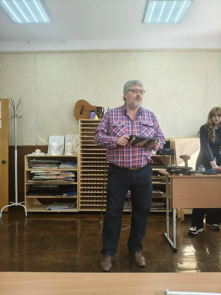 Преподаватель Мария Николаевна Печенкина приняла участие в четырехчасовом мастер-классе по скульптуре от профессионала высокого уровня — Дмитрия Валерьевича Костылева, преподавателя ЮУрГИИ и члена Союза художников России.